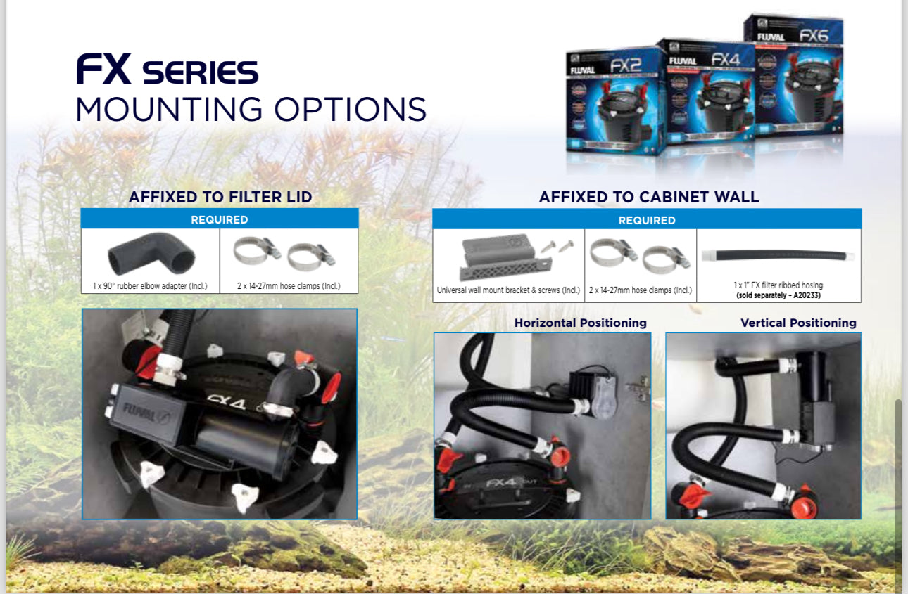 - Compatible with Fluval FX Series filters and competitive canisters (1” to 5/8” (25 to 16 mm) hose adapters included)